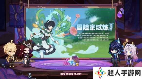 战斗活动。冒险家协会给我们带来了一场试炼,我们需要发挥队伍中角色的能力,通过挑战赢取奖励。