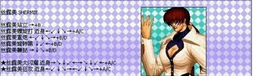 滑步踢:→+B飞弹强力锤:→↓←+A或C升龙决斗:→↓→+A或C敲大锤:↓←+B或D喷气反击:←↓→+A或C百万大锤蒸汽:↓←↓→+A或C最终冲击:↓→↓→+A或C ……乖乖地安睡吧!22.夏尔米