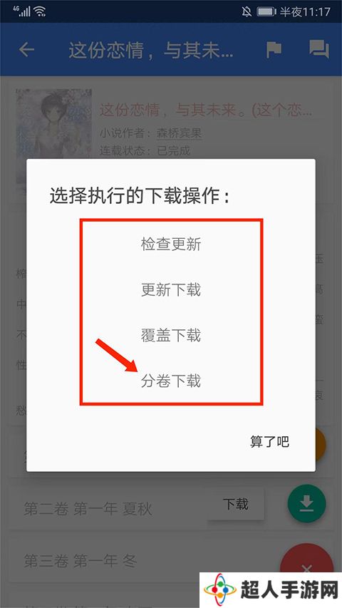 4、包括检查更新、更新下载、覆盖下载和分卷下载,用户可根据需求选择相应的下载方式,这里以【分卷下载】为例;