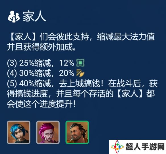 家庭成员互相支持,降低他们的最**力值并获得额外的加成。