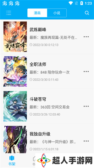 1、漫画天台“书架”这里都是自己所收藏的漫画与小说;