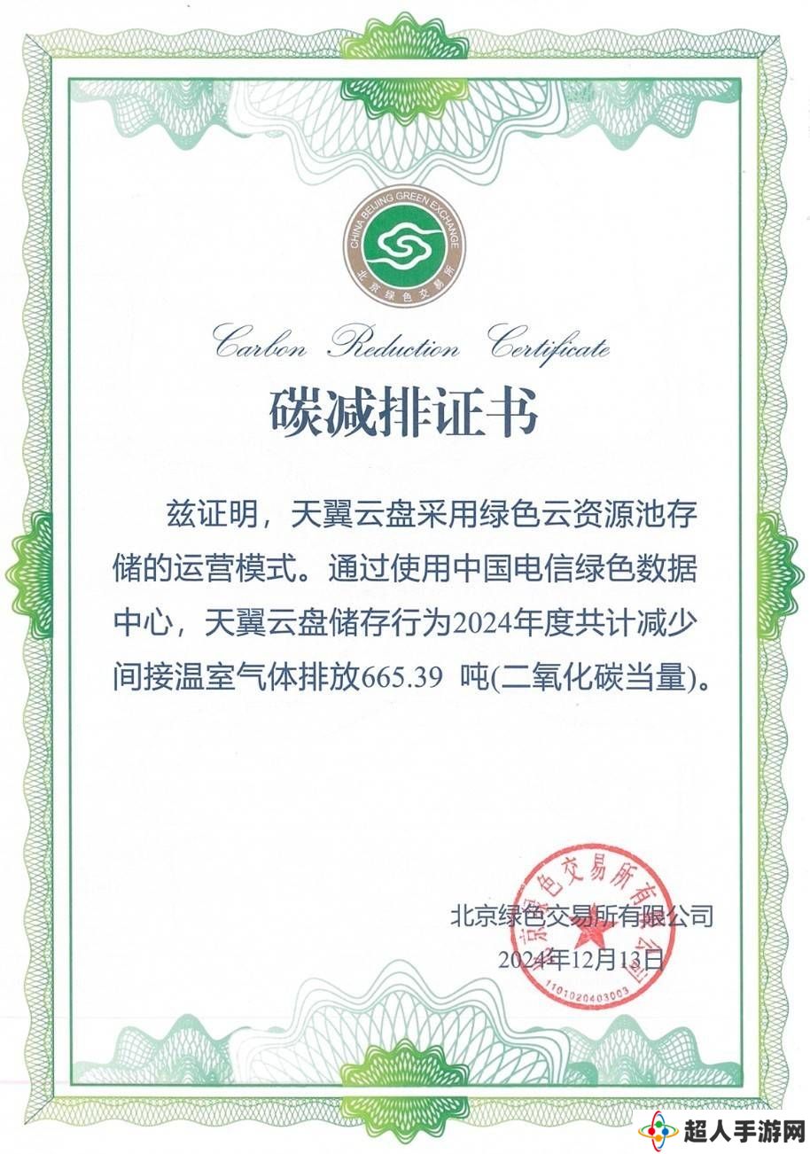网盘业首家!天翼云盘绿色云盘获颁“碳减排证书”