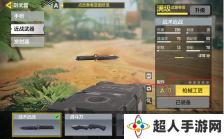 4、在战术近战界面点击枪械工匠按钮,进入战术近战蓝图界面。